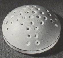 [2] SA: Dette er en meget interessant opplysning. Vi vet at RMH fikk laget porselensmodeller av skrivekugletastaturet, som han lånte ut til forskjellige firmaer som en prøve på skrivekuglen, sikkert i håp om at de etterpå ville kjøpe en komplett maskin. To slike porselensmodeller er kjent i dag, en hvit og en svart.