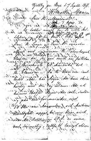 Den indscannede kopi er desværre af dårlig kvalitet, fordi der er skrevet på begge sider af brevpapiret.