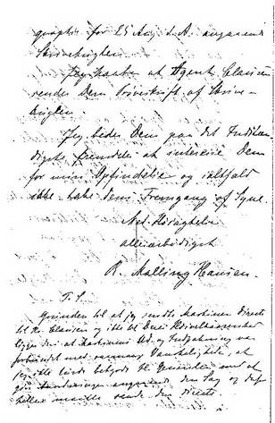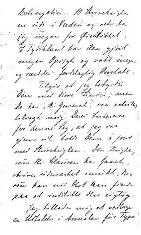 SA: This letter is most likely written to general Christian Thomsen Christensen, 1832-1905, who was Danish Consul in New York from 1870 to 1873. Malling-Hansen decided to send the first writing ball directly to agent Clausen in USA, not to bother the General with the packing in and out of the writing ball. General Christensen was a Danish-American, who was known to be a very good supporter to many Danes in USA.