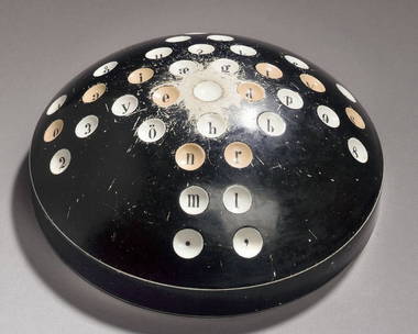 - Dette er en av de to porselenskuglene som er kjent pr. i dag. Den ble solgt til en samler i november 2006 for 10 000.- DAK. Kan det være en slik RMH omtaler som et "øvelsesapparat"? I sin bok "Hvem var Skrivekuglens Opfinder" skriver RMHs datter, Johanne Agerskov(1873-1948) at RMH også benyttet en porselenskugle da han utarbeidet plasseringen av bokstavene på tastaturet. Forhåpentligvis vil fremtidens forskning kunne bringe på det rene flere sikre fakta vedrørende dette