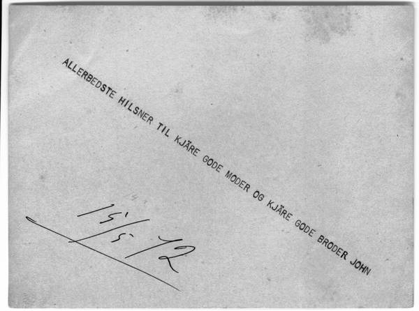 VERY BEST REGARDS TO DEAR SWEET MOTHER AND DEAR BROTHER JOHN. R. MALLING HANSEN.