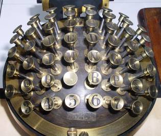 SA: I have never written a letter on a writing ball, but I have noticed that on many of the pictures we have of writing ball keyboards, there is one key that is blank, without any letter or sign engraved. Maybe this is the space bar? The models below, are of different types and from different times - but they have a blank key on the keyboard in common! (Photos: Dieter Eberwein)