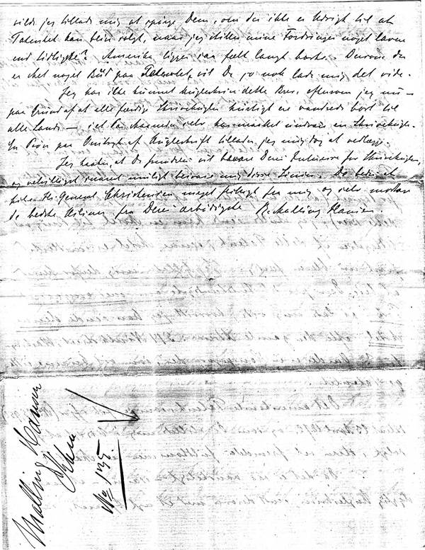 ’Dersom der er sket noget Bud paa Patentet’? Altså RMH spørger, om der er nogen, der har budt på hans Patent? Mærkeligt spørgsmål – der fandtes jo så vidt jeg ved telegrafforbindelse over Atlanten i 1872? Gjorde der ikke? Der kan vel ikke stå ’Brud’ på patentet? Det er synd, at det er så svært at læse. Dette brev kan have ENORM HISTORISK BETYDNING, idet amerikanerne, der opfandt Remington maskinen i 1872 med det sindssyge QWERTY tastatur, jo havde forhandlet med RMH om hans patenter!!! Er det denne handel, der er gået i vasken?