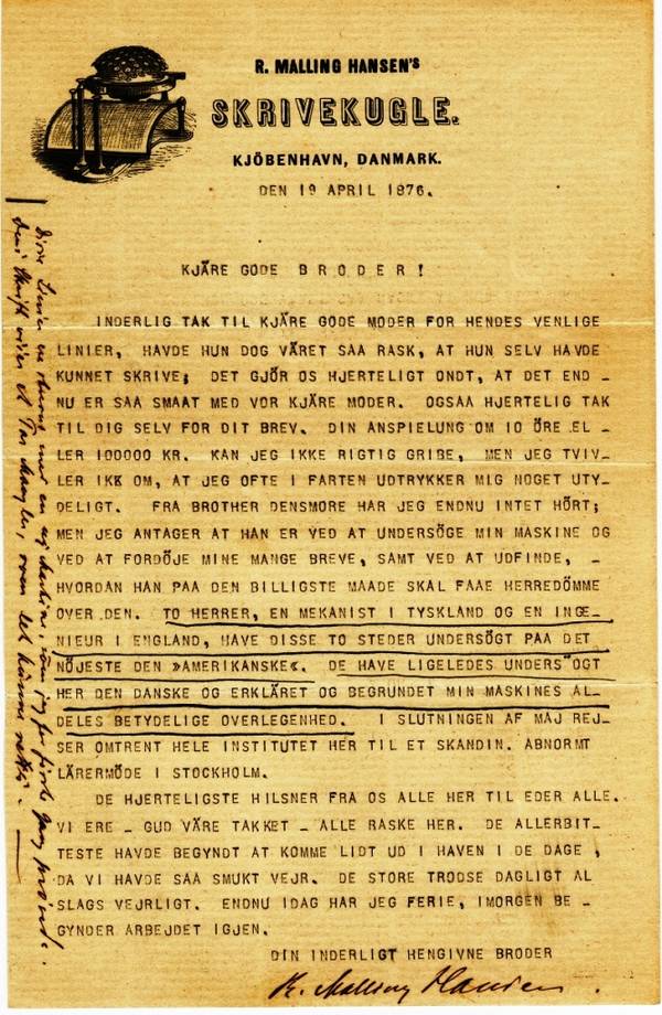 At the centre: R. MALLING HANSEN’s Writing Ball