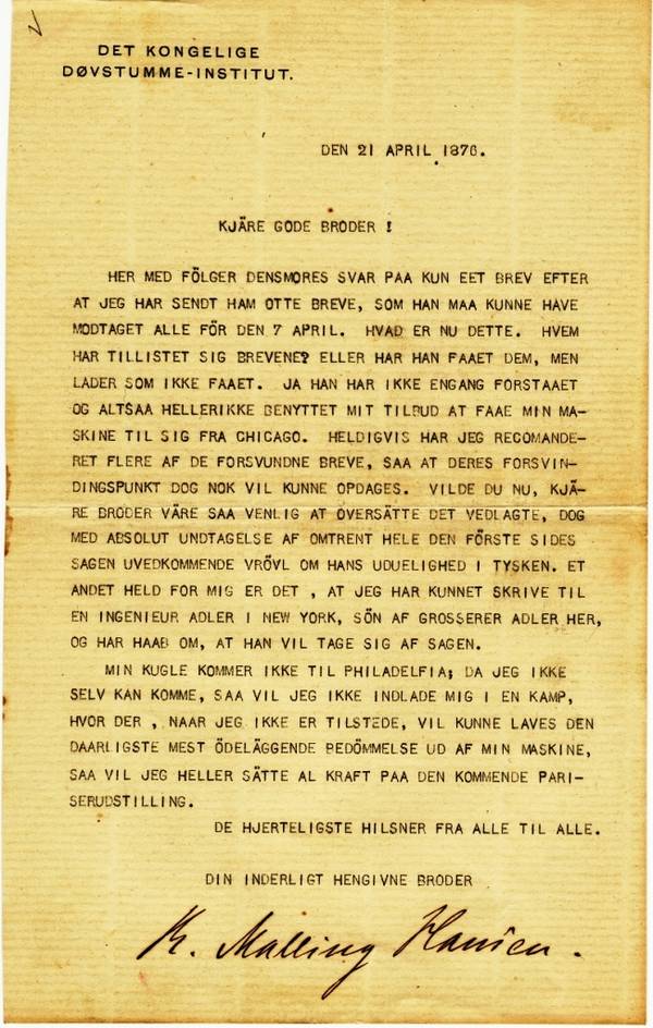 [1] Sverre: Hvis RMH havde kunnet se ind i fremtiden - så var han nok selv taget til USA for at overbevise Densmore om at sætte skrivekuglen i produktion. Og han kan vist alligevel ikke læse engelsk, eftersom han beder broderen om at oversætte brevet fra Densmore.