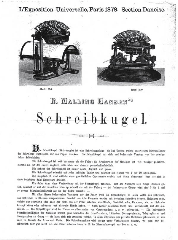 - RMH's writing balls at the World Exhibition in Paris 1878. Copyright: Private