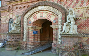- Personalet ved Blindeinstituttet fotografert foran innganspartiet i 1910. Omtrent midt i bildet ses en hvithåret Johannes Plesner, som var forstander. Tre plasser til venstre for ham, ses Malling-Hansens datter Engelke Wiberg, og fire plasser til høyre står Engelskes ektemann, inspektør Fritz Wiberg.
