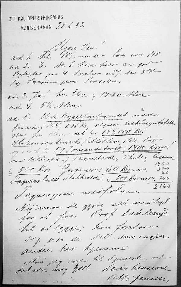Brevet fra Otto Jensen var et svar på Malling-Hansens forespørgsel dagen inden (se dette).
