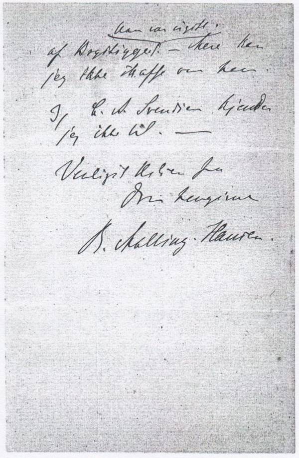 [1] CB: Everything in this letter was written by hand. We have 3 letters from the collections of Otto Lind. The fact that the word ‘collections’ (‘samlinger’ in Danish) was written with the initial letter in lower case shows that this comment was made after 1948 (before that time all nouns were written with the initial letter in upper case). SA: I have recently discovered that all the letters from Otto Lind’s collection originally was written to a teacher named Anders Petersen. How his correspondance came in the possession of Otto Lind, I don’t know. Anders Petersen is obviously and old acquaintance of Malling-Hansen from the Jonstrup time. His correspondance can be found in the Danish National Private Archive, and is dated from 1856 until 1913. Petersen lived from 1827 to 1914.