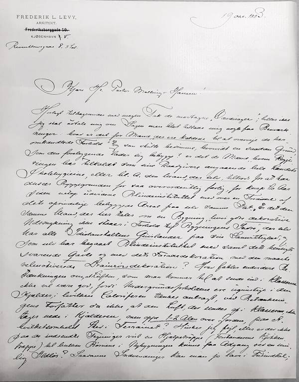Baggrunden er, at Malling-Hansen den 31 juli 1883 havde sendt planer og forslag til Kultusministeriet om en udvidelse af døvstummeinstituttet til at kunne rumme 130 børn. Denne plan, som var udformet i nært samarbejde med Malling-Hansens foretrukne arkitekt, Levy, blev af ministeriet sendt til granskning af arkitekt Meldahl. Meldahl afleverede en voldsomt kritisk bedømmelse af planerne, og det er denne kritik som i Levys brev benævnes ’Betænkningen’.