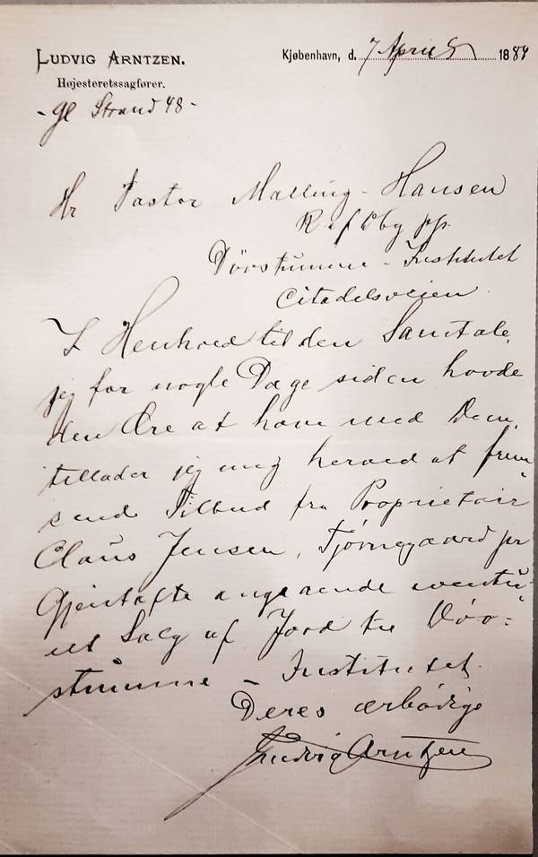 LUDVIG ARNTZEN Kjøbenhavn, d. 7.April 1884