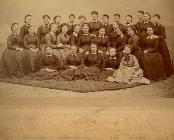 - Under dette bildet ses noen nesten utviskede setninger, der det fremgår at bildet er en gave fra Johan Keller til Rasmus Malling-Hansen. Dette kan kanskje ses som en meget vennlig gest, men i følge Jan William Rasmussen i Døvehistorisk Selskab var det mer å betrakte som en provokasjon overfor Malling-Hansen. Keller var godt klar over RMHs misnøye med at han tok inn elever som sannsynligvis hørte mer hjemme på Døvstummeinstituttet, og å sende bilder av sine avgangselever i et så stort antall kan nærmest oppfattes som om han ønsker å "peke nese" av RMH og si: Æda bæda, se så mange elever jeg har - langt flere enn deg, eller hva? RMH som hadde et særdeles hissig gemytt kan nok ikke ha unngått å oppfatte dette som et pek!