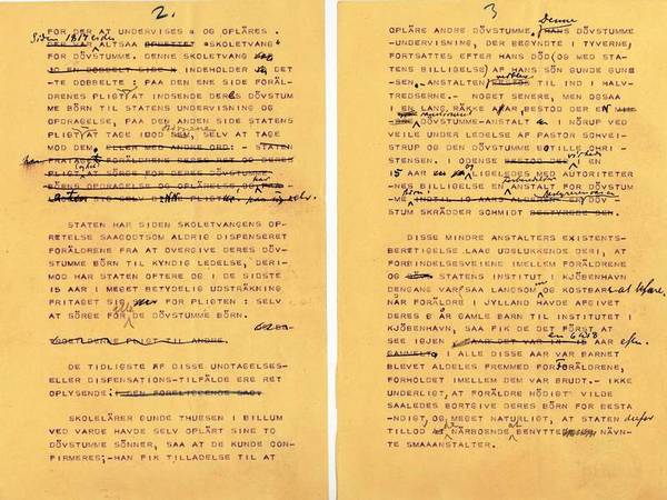 [2] CB: The text has an asterisk, seemingly referring to a handwritten note – difficult to read – at the bottom of the page, saying: “However a German by the name of Baumann had previously made some rather failed attempts to educating deaf-mute children in Copenhagen by means of the speech method”.
