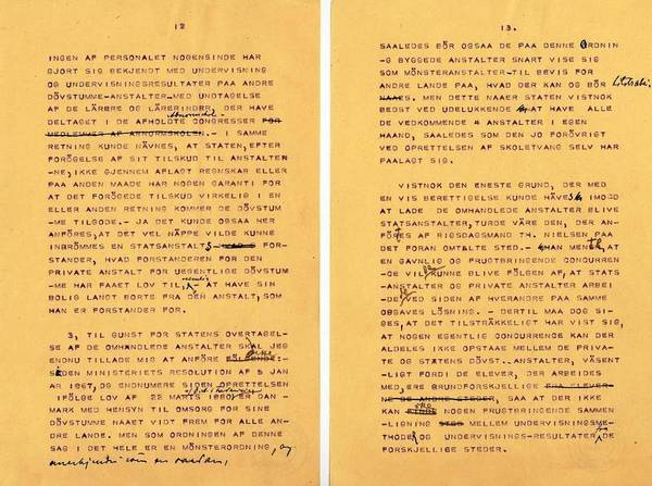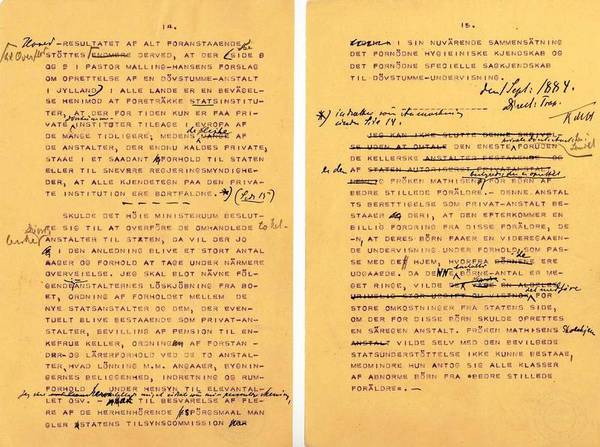 3. IN FAVOUR OF THE STATE TAKING OVER THE SAID INSTITUTIONS I SHALL ALLOW MYSELF TO MENTION ALSO THIS: EVER SINCE THE MINISTERIAL RESOLUTION OF JANUARY 5, 1867, AND EVEN MORE SINCE THE ESTABLISHMENT- IN ACCORDANCE WITH THE LAW OF MARCH 22,1880 – OF THE INSTITUTE IN FREDERICIA, DENMARK HAS SPEARHEADED THE DEVELOPMENT, COMPARED WITH OTHER COUNTRIES, IN RELATION TO ITS CARE FOR THE DEAF-MUTE. BUT SINCE THIS FIELD IS ENTIRELY A MODEL ARRANGEMENT, AND IS RECOGNISED AS SUCH, CONCOMITANTLY ALSO THE INSTITUTIONS FOUNDED ON THIS ORDER OUGHT TO VERY SOON DEMONSTRATE THEMSELVES AS MODEL INSTITUTIONS – SHOWING OTHER COUNTRIES WHAT CAN AND SHOULD BE ASPIRED TO. BUT THIS AIM WOULD SEEM TO BE BETTER ACHIEVED IF THE STATE RETAINS ALL THE 4 RELEVANT INSTITUTIONS IN ITS OWN HAND, IN CONFORMITY, OF COURSE, TO THE RESPONSIBILITY IT HAS TAKEN UPON ITSELF BY INSTITUTIONALISING THE COMPULSORY SCHOOL ATTENDANCE.