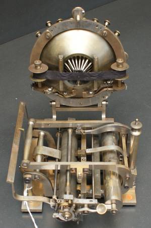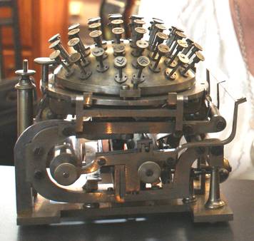 [3] SA: Quite likely, this note is about the last model of the writing ball, developed and produced by the mechanic August Lyngbye. This model featured paper platens and was capable of using folio-sized sheets. Lyngbye produced the prototype in 1885 and sold the machine from his workshop during the 1880s at the price of 150 kr for the model with only upper-case letters. He also advertised for a version with upper as well as lower case letters at the price of 230 kr. Therefore, it seems likely that this letter or note was for August Lyngbye, and that the specimen of handwriting added is that of Lyngbye.