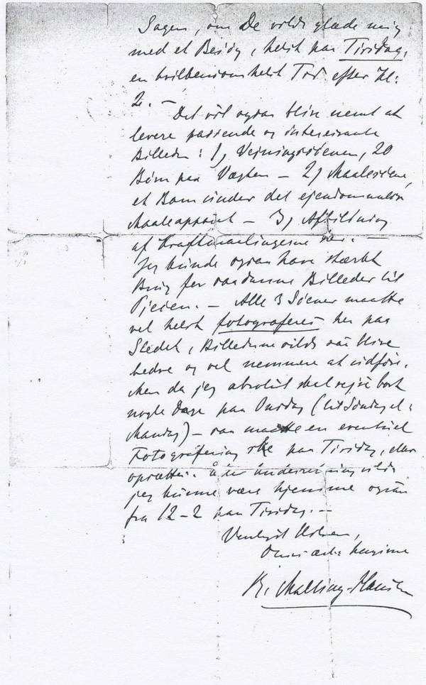 It would have been too detailed and long-winded if I had tried to produce a comprehensive article, so what is here is merely a rather dry, schematic extract of key points included in the brochure currently under production. However, the advantage of it is that not a single bit of what is in the enclosed text has hitherto been known within the science of physiology. In effect, it could very well be captioned: “Discoveries from the field of physiology”. All the practical aspects that are teaming out of this issue I want to save for the brochure (or the book), - rather, a lot of it an intelligent and reflecting person can easily deduce from the enclosed. I can easily provide you with sufficient information and materials for the Casir (?) regarding this whole issue, if you would please with with your visit, preferably on Tuesday, any time after 2 o’clock.