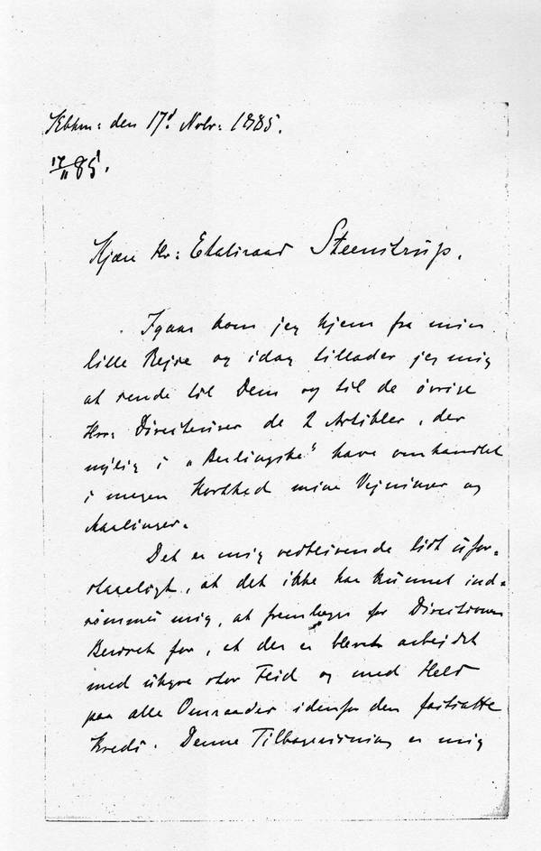 It is still somewhat incomprehensible to me that I have not been granted the chance to present to the Board the evidence that we have worked immensely hard and successfully in all areas of the sphere under our research. This repudiation is so much more perplexing, considering that both you, Sir, and his Excellency Madvig[3] used to express the opinion that I would be allowed to meet the Board. But even in the event that such a permission is not granted, I might at least – in my view – be conceded the privilege of presenting my material, the raw materials and my graphic drawings, in front of a smaller circle of members of the Board.
