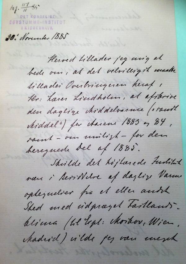 Dette håndskrevne brev er et af flere lignende som Malling-Hansen skrev til Meteorologisk Institut. Korrespondancen vidner om hans behov for information angående temperaturer i forskellige lokaliteter rundt om jorden, alt sammen et led i hans naturvidenskabelige forskning omkring varme, solstråling og børns kropslige udvikling.