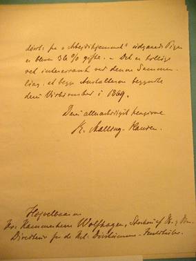 [1] jmc: Håndskrevet brev, fundet i Rigsarkivet, Wolfhagens dokumenter. Se også brev af 19 jan 1888 fra RMH til Wolfhagen om samme emne.