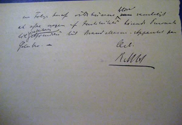 Imidlertid endte Sagen tilsyneladende dermed, idet der ikke siden den Tid en kommen nogen Meddelelse til Institutet angaaende samme Sag. Jeg tillader mig derfor nu igjen at optage nævnte Andragende, idet jeg særligt maatte gjøre opmærksom paa, at det i Ildebrandstilfælde her paa Inst: først og fremmest vil være nødvendigt at faa samtlige Elever i Sikkerhed, og at det som en Følge heraf vilde kunne blive vanskeligt at afse nogen af Institutets hørende Personale til øjeblikkelig Afsendelse til Brandallarms-Apparatet paa Østerbro.