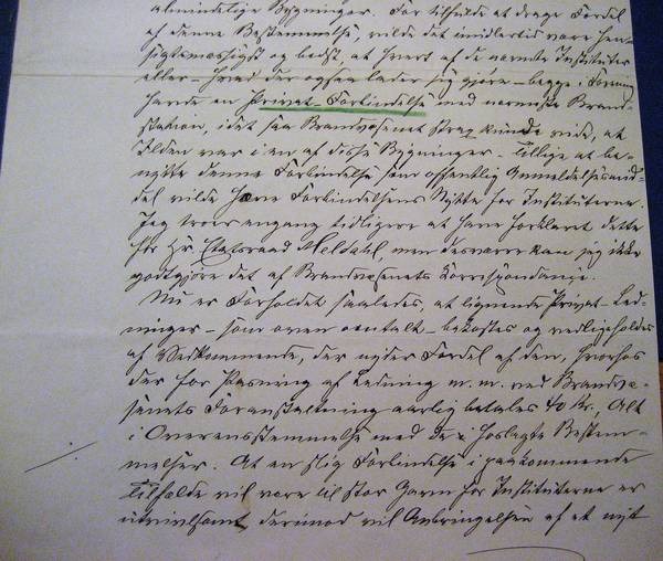 I Anledning af det høitærede Instituts Skrivelse af 4de ds. skal jeg ikke undlade at meddele, at saavel Døvstumme- som Blinde-Institutet henføre til de Bygninger, med hvilke – i Tilfælde af en udbrudt Ild – Brandvæsenet[4] vil give Møde med et større Antal Slukningsredskaber end ved Ild i almindelige Bygninger. For tilfulde at drage Fordel af denne Bestemmelse vilde det imidlertid være hensigtsmæssigt og bedst, at hvert af de nævnte Instituter eller – hvorend det ogsaa lader sig gjøre – begge i Forening havde en Privat-Forbindelse[5] med nævnte Brandstation[6], idet saa Brandvæsenet strax kunde vide, at Ilden var i en af disse Bygninger - tillige at benytte samme Forbindelse som offentlig /------middel?/ vilde hæve Forbindelsens Nytte for Instituterne. Jeg tror engang tidligere at have forklaret dette for hr. Etatsraad Meldahl, men desværre kan jeg ikke godtgjøre det af Brandvæsenets Korrespondence.