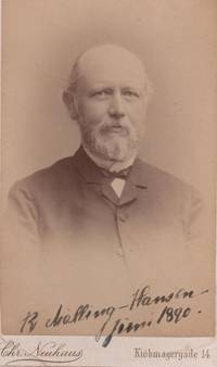 [1] JMC: Friedrich Hermann Wolfhagen, 1818-1894. Juristexamen i 1842. 1851 amtmand over Flensborg Amt, 1854 kammerherre. 1855 medlem af Rigsraadet. Fra 1856-63 Minister for Hertugdømmet Slesvig (og som sådan kan han og RMH have kendt til hinanden, eftersom RMH som ung lærer (1862)blev placeret ved det kgl Døvstumme-Institut i Slesvig by med henblik på at forstærke det danske sprog i undervisningen. Wolfhagen indlagde sig, i følge Dansk Biografisk Leksikon, megen fortjeneste af det danske sprogs bevarelse i Mellem-Slesvig. Efter 1863 deltog han ikke længere i det politiske liv. Direktør for Døvstumme-Institutterne fra 1885, Formand i bestyrelsen for Blindeinstituttet og for det Danske Haveselskab. 1867-78 Præsident i komiteerne for Danmarks deltagelse i en række af verdensudstillinger: 1867 i Paris, 1873 i Wien, 1875 i Brüssel, og 1878 i Paris. I og med dette hverv har Wolfhagens og Malling-Hansens veje krydset hinanden i og med RMHs deltagelse i udstillingerne i 1873 og 1878.