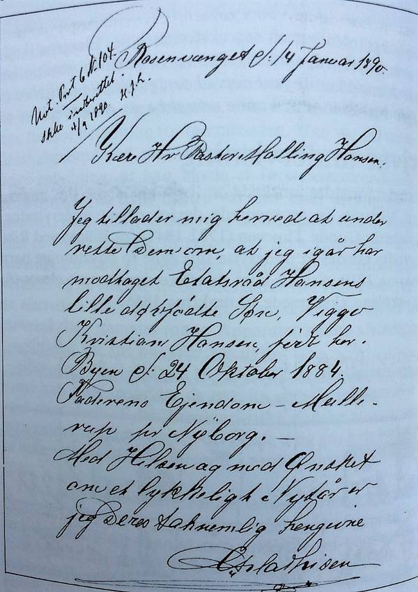[2] JMC: I venstre hjørne er noteret (med en anden håndskrift): Not. Prot. 6 N. 104, ikke indberettet. 4/9 1890 og en signatur som jeg tyder som H.J.L.