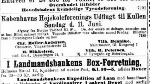 [1] JMC: Den københavnske Højskoleforening blev dannet af en kreds med præst og digter J. C. Hostrup og folketingsmand Harald Holm i spidsen. De ville skabe et mødested for gamle højskoleelever. Den dannelsesrejse der blev startet med et højskoleophold skulle fortsætte i foreningen. Efter en periode i Helgolandsgade flyttede foreningen til større lokaler i egen bygning på Svanholmsvej.