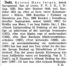 Som det fremgår af vedhæftede foto af præstelisten i Kjeldby Kirke var Kristen H. J. Dahl præst i perioden 1889-1901. På samme foto ser vi, at Rasmus Malling-Hansens svigerfar, Søren Johan Heiberg var præst i Kjeldby fra 1865 til sin død den 15 januar 1871.