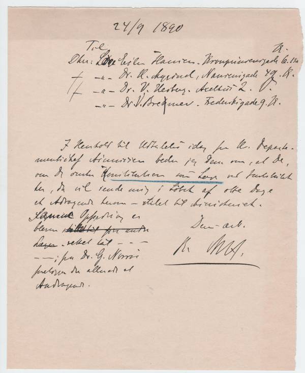 Doctor Esben Hansen, Kronprinsensgade 6, 1st floor+ Dr H Mygind[2], Nansensgade 49, K+ Dr V Heiberg, Axelhus 2, V+ Dr V Bremer, Frederiksgade 9, K