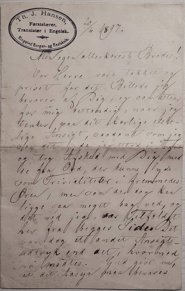 1897.04.20 fra Thomas Jørgen Hansen til Johan Frederik Hansen.