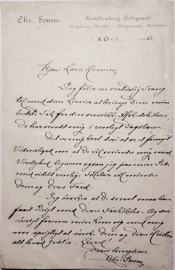 1906.01.26 fra Christian Sonne til Johan Frederik Hansen.