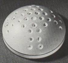 - Vi kjenner pr. i dag (2022) til to slike porselenshalvkugler - en hvit og en svart, men ingen av dem er nok den halvkulen Malling-Hansen anvendte til sine eksperimenter med plasseringen av bokstavene.