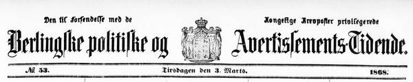 [1] JMC: Sandsynligvis blev denne adresse publiceret i mange aviser; jeg har hidtil fundet den i Viborg Stiftstidende 5 marts 1868, i Flyveposten 4 marts 1868 og i Morgenposten 6 marts 1868, Folkets Avis 4 marts 1868, Viborg Stiftstidende 5 marts 1868, Horsens Avis 5 marts 1868, Slagelse-Posten 5 marts 1868 og Morgenposten 6 marts 1868.