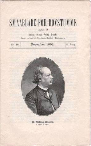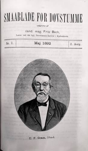 - Dette er den utgaven av "Smaablade for Døvstumme" fra 1892, der Malling-Hansens prekentekst fra 1872 ble gjenopptrykket. En gravering av døvstummelæreren Ulrik Gram prydet forsiden. Han var selv elev ved Døvstummeinstituttet i København, og ble deretter deres første døvstumme lærer. Han var også en betydelig kunstner og ble tildelt Danebrogsordenen av den danske kongen.