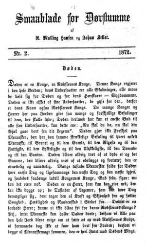 SA: "Smaablade for Døvstumme" utkom også med fire utgaver i 1872, og tidsskriftet var da et samarbeidsprosjekt mellom Johann Keller og Rasmus Malling-Hansen. Disse to døvstummepedagoger var de store pionerene innen undervisningen av døvstumme i Danmark i det 19. åhundret. Forholdet mellom dem var tidvis meget godt, men i andre perioder anstrengt, og tildels ble de motstandere hva angår undervisningsmetoder og fordelingen av de døvstumme barna mellom sine respektive skoler. Keller drev sin private skole basert på talemetoden, mens Malling-Hansen var forstander for det statlige instituttet. Dessverre gikk Keller bort allerede i 1884, og da inntok Georg Jørgensen, forstander for det nyetablerte statlige instituttet i Fredericia, rollen som talsmannen for talemetoden.