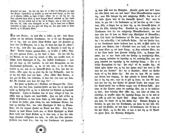 Vor Herre og Frelser var i Galilæa ved Genezaret Sø. Overalt, hvor han kom frem, samledes Folk om ham for at høre hans milde og kjærlige Ord og for at helbredes for Sjælens og Legemets Sygdomme. Ogsaa en Døvstum kom til ham, ledsaget af dem, der elskede ham og sørgede over hans Ulykke. Han var fuld af Tro og Tillid til Frelseren, at han baade kunde og vilde hjælpe ham. Det er Troen, der frelser, glem aldrig det, min døvstumme Broder, den dybe og inderlige Tro, som føder Kjærlighed til Gud og Menneskene; ved den vaagner Haabet om Naade hos Gud. Den Døvstumme og hans Venner troede paa, at Guds Kjærlighed og Guds Kraft boede hos Jesus Kristus, og de bad ham, at han kun vilde lægge Haanden velsignende paa ham, da vilde han blive helbredet. Og Frelseren saa deres Tro, og han tog den Døvstumme ved Haanden og førte ham bort fra Mængden. Hvorfor gjorde han det? Hvorfor vilde Jesus være ene med ham? Naar Menneskevrimmelen omgiver Dig, naar Alle betragter Dig med nysgjerrige Blikke, kan Du da af dit fulde Hjærte bede til Din himmelske Fader? Nej, naar Du beder, da gaa ind i Dit Lønkammer og luk Din Dør og bed i Løndom, stille, at Ingen ser og hører Dig, og Din himmelske Fader vil høre Din stille, inderlige Bøn. Saaledes tog vor Frelser ogsaa den Døvstumme bort fra den nysgjerrige Menneskevrimmel?[2] ene med ham talte han til ham om Guds evige Kjærlighed til Menneskene; Jesu Ord kunde den Døvstumme vel ikke høre, men han læste Tankerne i det milde Øje, i det forklarede Aasyn. Da vor Frelser saa, at den Døvstumme havde forstaaet ham og følt, at Gud holder sin Haand over Enhver, som i Sandhed tror paa ham, da rørte han ved hans Øren og ved hans Tunge, og strax aabnedes Øret, saa at den Døve kunde høre Herrens livsalige Ord, og Tungen løsnedes, saa at han kunde prise den kjærlige og barmhjærtige Gud; paa én Gang aabnedes det legemlige og aandelige Øre, paa én Gang løsnedes den legemlige og den aandelige Tunge.
