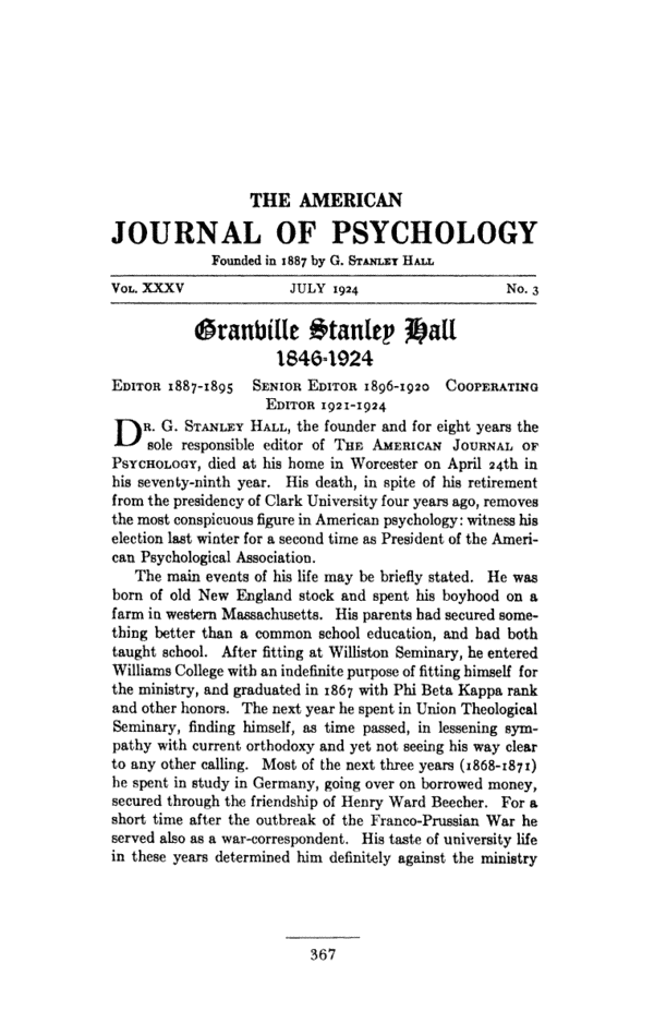 This article is a comment on a work published by Professor Granville Stanley Hall (1846-1924) in 1904: “Adolescence: Its Psychology and its Relations to Physiology, Anthropology, Sociology, Sex, Crime and Religion”. Hall was an influential and rather controversial American psychologist and educator. His emphasis was on childhood development and evolutionary theory. He founded the ‘American Journal of Psychology’ in 1887, and in 1892 he was appointed the first president of the American Psychological Association.