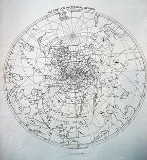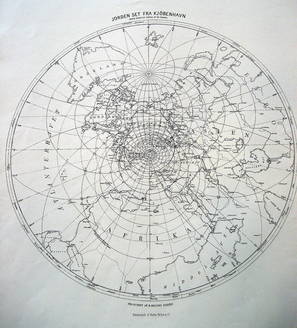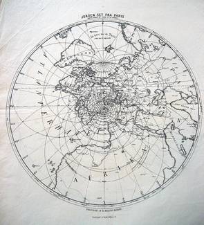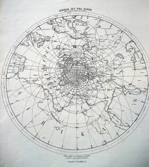 There is a map for each of these cities: Copenhagen, Paris, Athens, St.Petersburg, Stockholm and Rome. Each of the maps depict the globe in its special way and has the title: “The Earth as seen from Paris (or any other of the cities) until an angle of 80 degrees”.