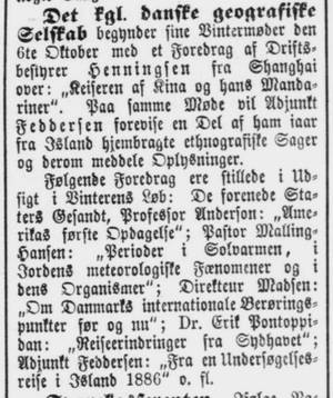 JMC: Af en notitis i Dagens Nyheder 1886.10.29 fremgår det, at Malling-Hansens foredrag blev afholdt ved selskabets møde