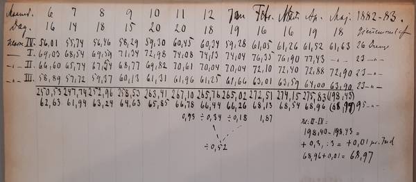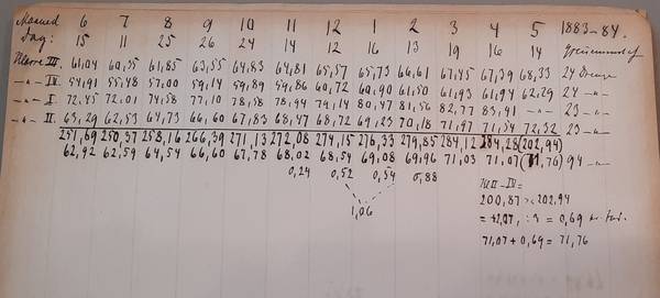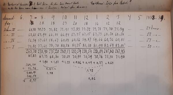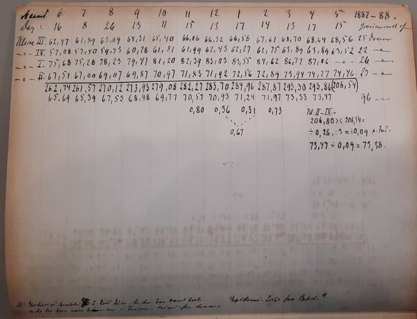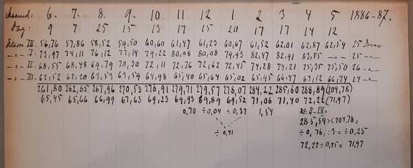 Medens jeg boede paa det nye Opfh. kom jeg til at hjælpe Forstanderen for Døvstummeinstituttet Malling-Hansen med hans Beregninger vedrørende Børns Tilvækst i Vægt og Højde m.m., hvis Resultater, de de offentliggjordes, vakte megen Opsigt og gav Forfatteren Ry for Genialitet. Jeg fortjente derved et Par 100 Kr., ved Hjælp af hvilke jeg kunde deltage i det i 1880 afholdte store Nordiske Skolemøde i Stockholm. Som saa ofte var det ogsaa her en Tilfældighed, der bragte mig i Forbindelse med Malling-Hansen. Paa Opfh. foretoges der allerede den Gang maanedlige Vejninger af Eleverne, hvilket Arbejde jeg havde paataget mig. Fra Tid til anden aflagde jeg Beretning om Resultatet i Opfh’s Aarsberetninger, og i en af disse havde jeg som et Kuriosum udregnet, hvad det kostede Opfh. at producere et Pund Drengekød – det var meget dyrt, men jeg husker ikke mere Prisen.