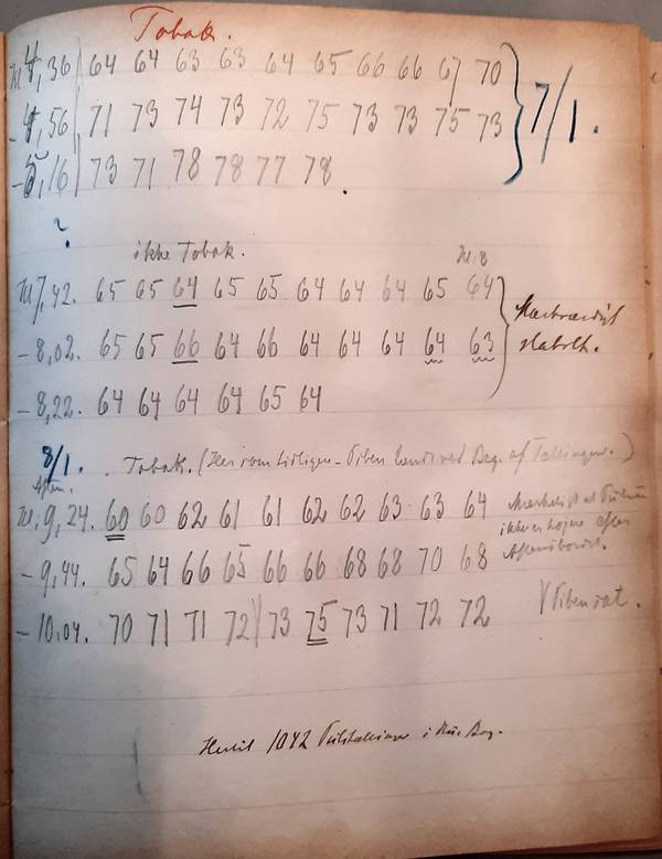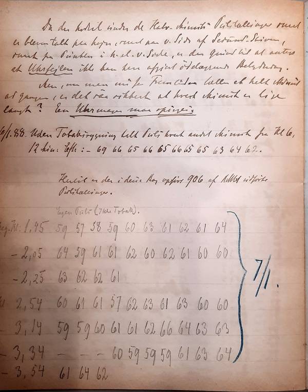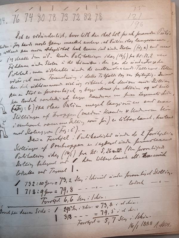 Og nu kan vi dokumentere, at i det mindste fra december 1887 begyndte Malling-Hansen at inkludere pulstællinger i sine longitudinelle forskningsserier! Han målte drengens og pigernes puls under forskellige forhold og gjorde også meget detaljerede målinger af sin egen puls i hvile, efter måltider, i forskellige kropsstillinger, efter aktiviteter og efter at have røget tobak. Resulaterne af disse undersøgelser nedfældede han i en notesbog, som jeg fandt på Rigsarkivet i august 2020 blandt Malling-Hansens dokumenter.