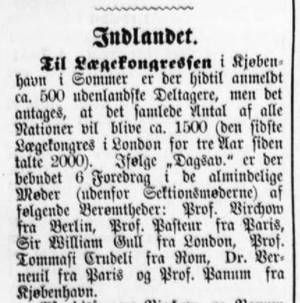 Artiklen i Thisted Amtsavis dokumenterer, at Malling-Hansen allerede i maj 1884 havde anmeldt sit kommende foredrag ved Lægekongressen i København, som fandt sted mellem den 10 og 16 august 1884. Det var en stor og usædvanlig ære for en ikke-mediciner at få lov til at holde foredrag for verdens førende læger. Sandsynligvis var det den danske professor Peter Panum som havde foreslået Malling-Hansen dette – eller som havde muliggjort hans deltagelse. Malling-Hansen havde kendt Panum i en årrække og Panum havde rådgivet Mallling-Hansen i forbindelse med forsøgene angående en forbedret diet ved døvstummestumme-instituttet i København i 1877-78 og måske også senere. Og Panum havde, som sin tids største danske mediciner, en nøglerollen i planlægningen og gennemførelsen af den internationale lægekongres.