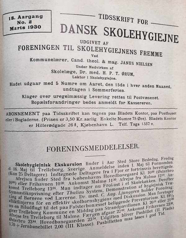 Tidsskrift for Dansk Skolehygiejne nr 2, marts 1930, artikel af Carl Schiøtz.
