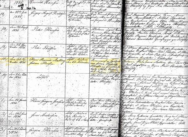 1. i Hans Rasmus Malling Johan Hansen, født 05.09.1835 i Hunseby, Musse, Maribo