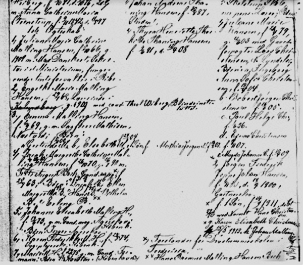 3. i Juliane Marie Kathrine Matzen, født 09.09.1809, død 13.05.1885 i Ringsted. Gift 08.07.1834 i Hunseby Kirke, Johan Frederik Hansen.