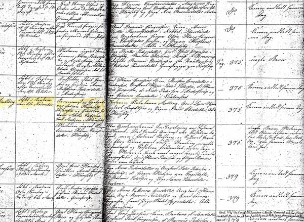 3. Juliane Marie Kathrine Matzen, født 09.09.1809, død 13.05.1885 i Ringsted. Datter af Forvalter Matzen på Knuthenborg. I FT 1834 er hun opført, som ugift plejedatter ved Rasmus og Marie Malling