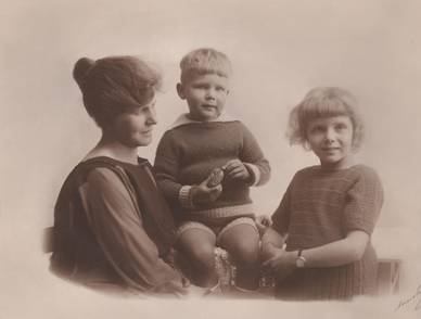 - Emma Mathiesen med barna, Gertrude, Elsebet og Jørgen. Foto: Privat